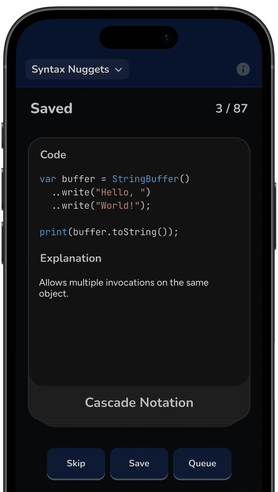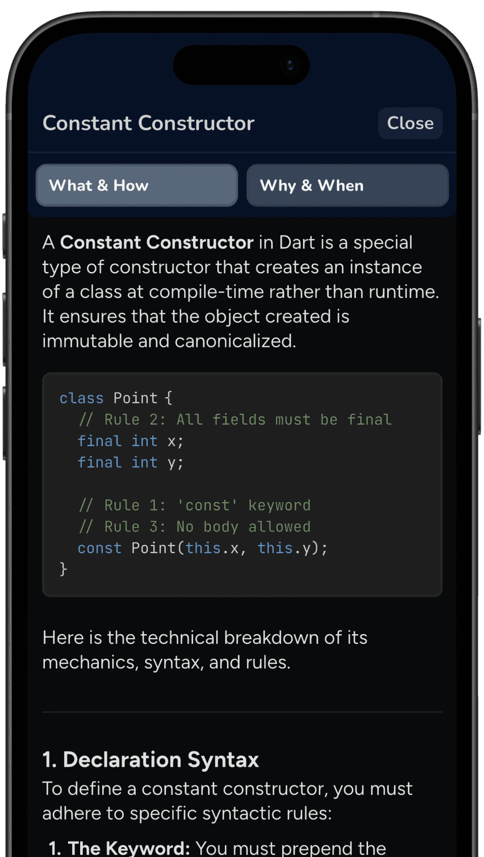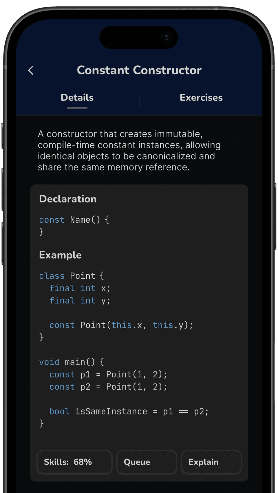 Stop getting stuck on trivial syntax that throws you off focus. Close gaps and smooth out rough edges in Dart to build senior-level coding skills.