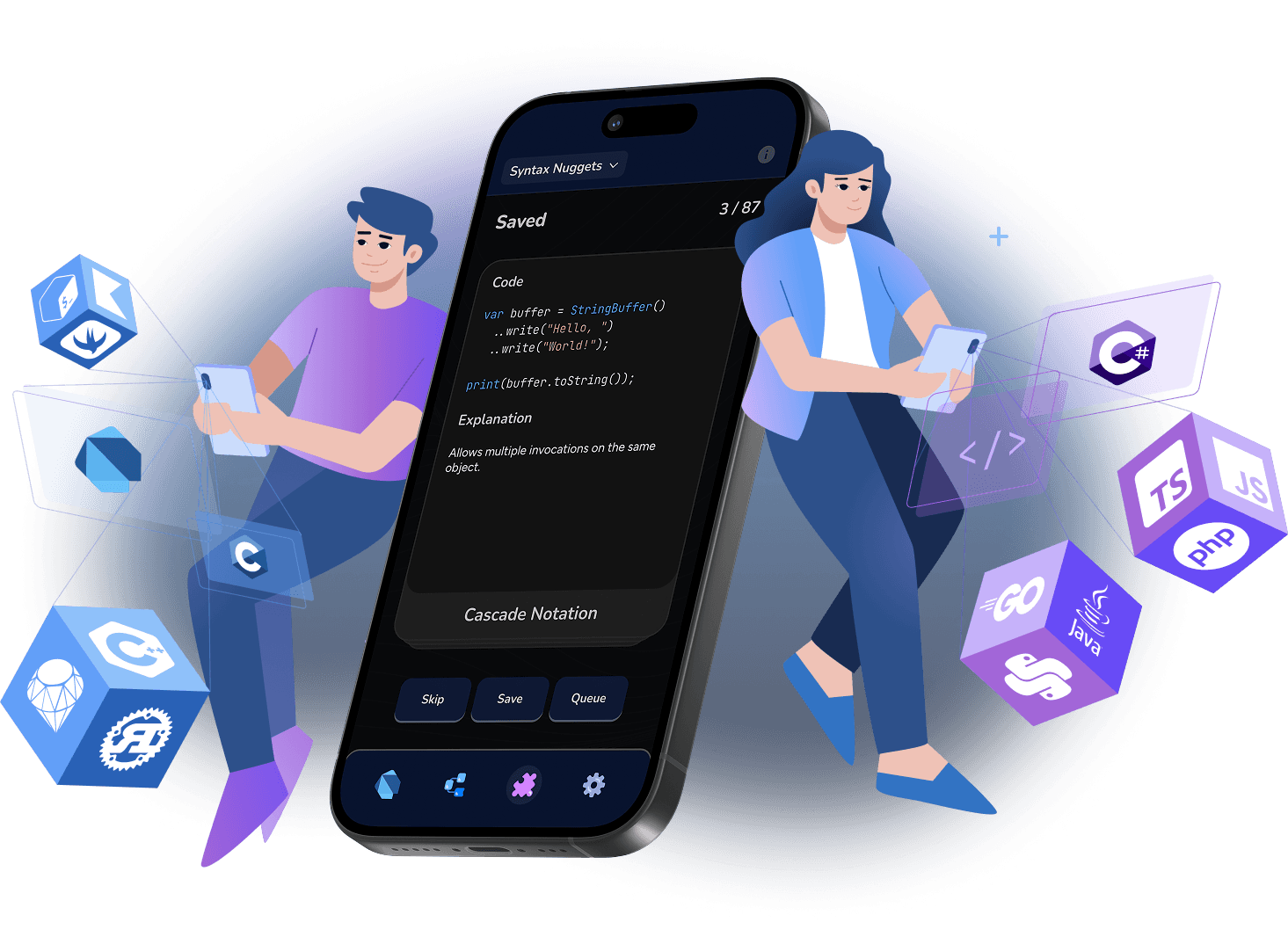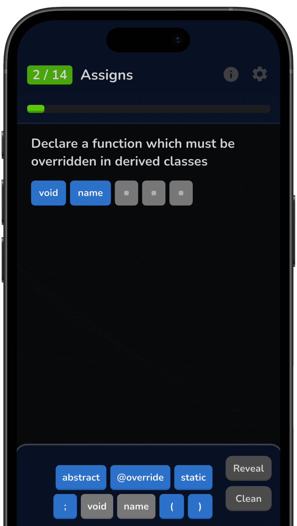 SyntBlaze is an app for mastering Dart. It incorporates learning methodology called Deep Grasping. Rather than passively reading or watching, you do bite-sized exercises, which help you develop core language skills. While most apps focus on beginners, SyntBlaze focuses on actual software developers, who want to write effortlessly, understand deeply and eliminate syntax struggles.