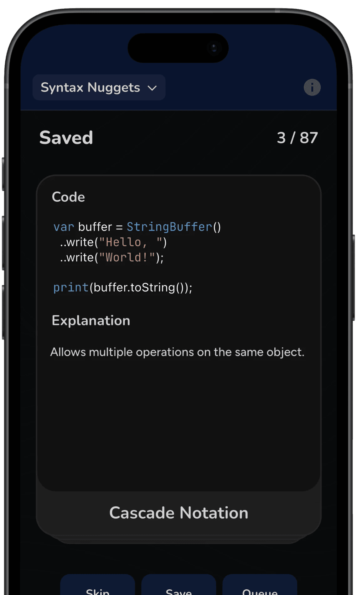SyntBlaze is an app for mastering programming languages. It is better technical documentation + active learning. While most apps focus on beginners, SyntBlaze focuses on actual software developers, who want to write effortlessly, understand deeply and eliminate syntax struggles.